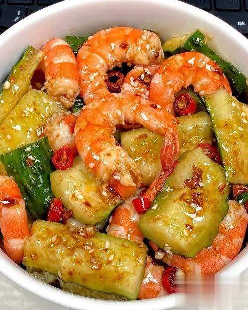 黄瓜炒虾仁材料:虾仁:200克;黄瓜:1根;大蒜:2瓣;干辣椒:2根(可选);料酒:适量;生抽:适量;白胡椒粉:适量;食盐:适量;橄榄油:适量