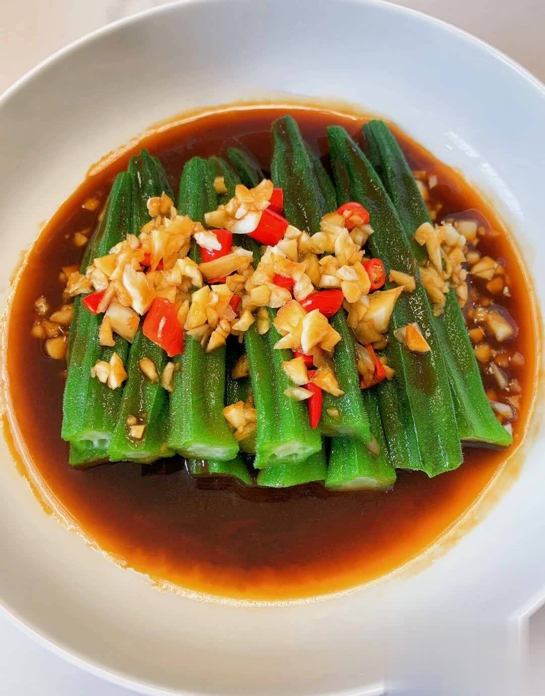 4. 将煮好的料汁均匀淋在秋葵上即可食用