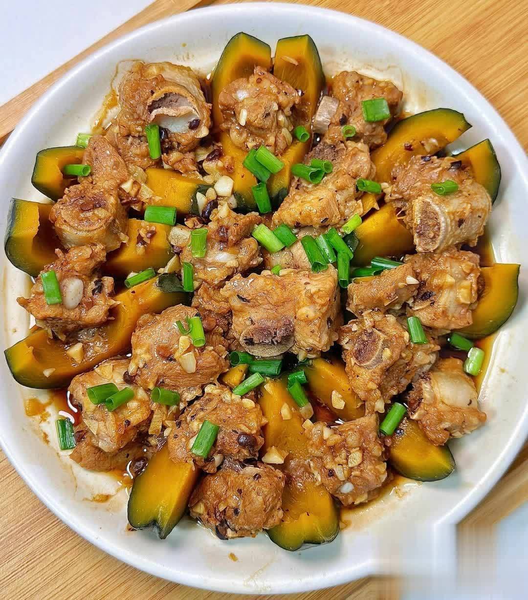 南瓜蒸排骨食材:南瓜 500 克、排骨 300 克、葱姜适量、料酒、生抽、蚝油、淀粉、盐、胡椒粉。